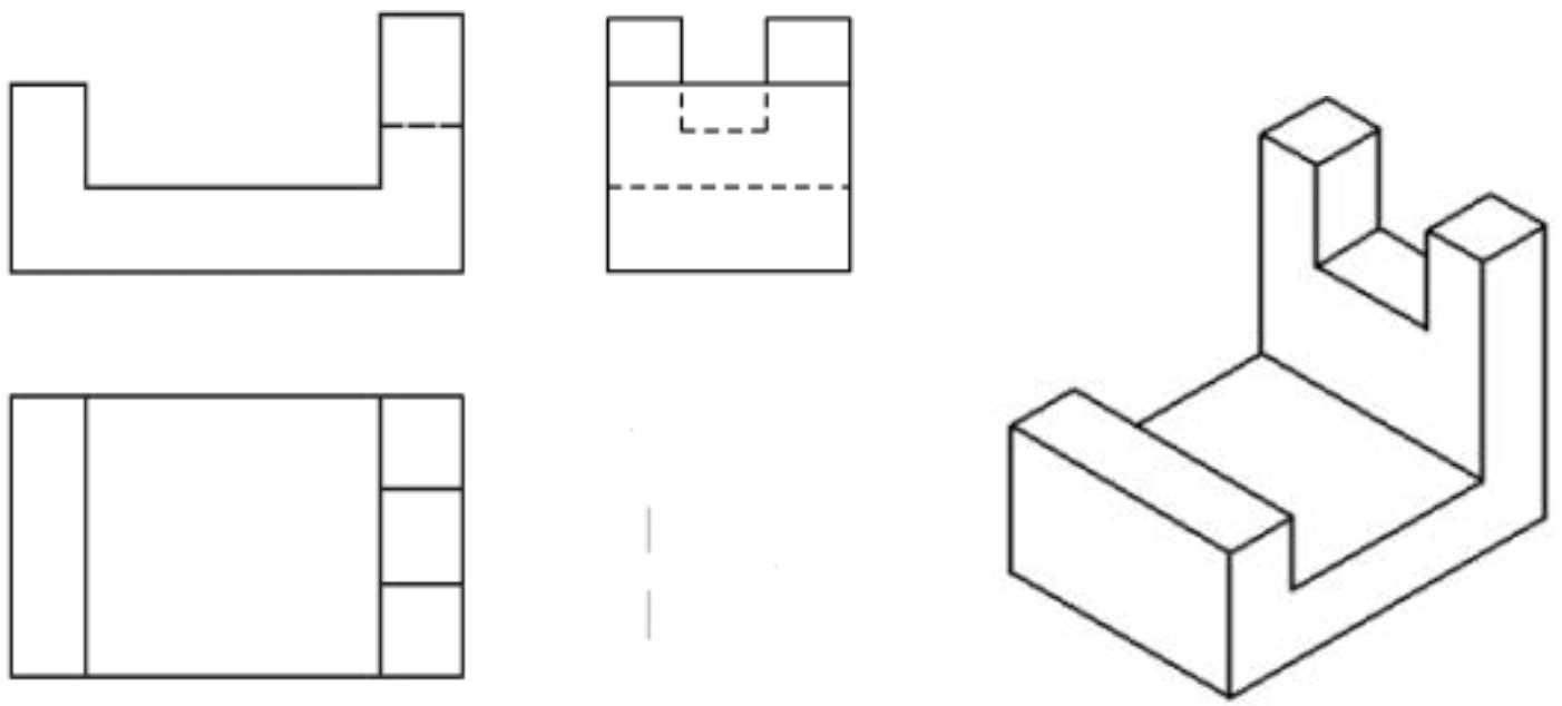 由三视图按1:1的比例量取尺寸(取整数)求作立体的正等轴测图。